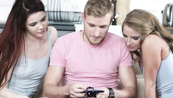Юные нимфы пригласили домой парня, они очень хотят повеселиться с селфи-палкой. Две горячие подруги, делят член, заставляя его выложиться на полную в этой потрясающей жмж групповухе.